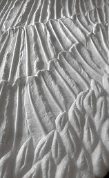 Jyl Bonaguro's artwork focuses on the concepts of industrialization, beauty, and immortality. She examines and deconstructs the effects of industrialization with pre-industrial materials and techniques such as a hammer and chisel for carving stone sculptures. Her series of sculptures on wings explores the texture and fragmentation possibilities inherent to marble itself. Parts are left untouched in order to expose the natural state of the marble, while other sections are highly developed to reveal the quality of detail and luxuriousness of the polished surface.